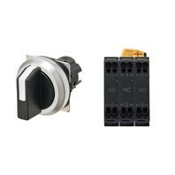 セレクタスイッチ(φ30), 非照光, 3ノッチ, 金属ベゼル, 手動復帰, 操作部色: 黒(不透明), IP66, プッシュインPlus端子台, 接点構成: NO/NC/NO