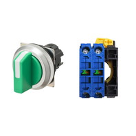 セレクタスイッチ(φ30), 非照光, 3ノッチ, 金属ベゼル, 手動復帰, 操作部色: 緑(不透明), IP66, ねじ端子台, 接点構成: -/NO/NO