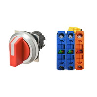 セレクタスイッチ(φ30), 非照光, 3ノッチ, 金属ベゼル, 手動復帰, 操作部色: 赤(不透明), IP66, ねじ端子台, 接点構成: NC/NO/NO