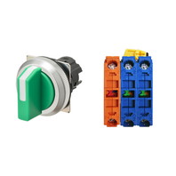 セレクタスイッチ(φ30), 非照光, 3ノッチ, 金属ベゼル, 右に自動復帰, 操作部色: 緑(不透明), IP66, ねじ端子台, 接点構成: NO/NO/NC