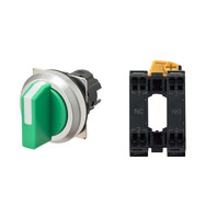 セレクタスイッチ(φ30), 非照光, 3ノッチ, 金属ベゼル, 右に自動復帰, 操作部色: 緑(不透明), IP66, プッシュインPlus端子台, 接点構成: NO/-/NC