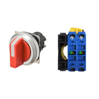 セレクタスイッチ(φ30), 非照光, 3ノッチ, 金属ベゼル, 右に自動復帰, 操作部色: 赤(不透明), IP66, ねじ端子台, 接点構成: NO/NO/-