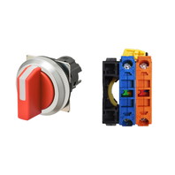 セレクタスイッチ(φ30), 非照光, 3ノッチ, 金属ベゼル, 右に自動復帰, 操作部色: 赤(不透明), IP66, ねじ端子台, 接点構成: NC/NO/-