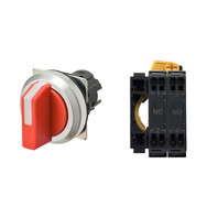 セレクタスイッチ(φ30), 非照光, 3ノッチ, 金属ベゼル, 右に自動復帰, 操作部色: 赤(不透明), IP66, プッシュインPlus端子台, 接点構成: NO/NC/-
