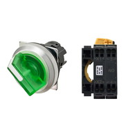 セレクタスイッチ(φ30), 照光, 2ノッチ, 金属ベゼル, 左に自動復帰, 操作部色: 緑(透明), IP66, プッシュインPlus端子台, 接点構成: NO/点灯ユニット/-, LEDランプ色: 緑, LEDランプ電圧: AC/DC24V