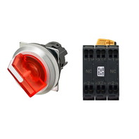 セレクタスイッチ(φ30), 照光, 2ノッチ, 金属ベゼル, 左に自動復帰, 操作部色: 赤(透明), IP66, プッシュインPlus端子台, 接点構成: NC/点灯ユニット/NC, LEDランプ色: 赤, LEDランプ電圧: AC/DC6V