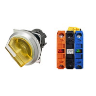 セレクタスイッチ(φ30), 照光, 2ノッチ, 金属ベゼル, 左に自動復帰, 操作部色: 黄(透明), IP66, ねじ端子台, 接点構成: NO/点灯ユニット/NC, LEDランプ色: 黄, LEDランプ電圧: AC200/220/230/240V