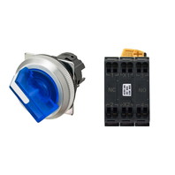 セレクタスイッチ(φ30), 照光, 2ノッチ, 金属ベゼル, 手動復帰, 操作部色: 青(透明), IP66, プッシュインPlus端子台, 接点構成: NO/点灯ユニット/NC, LEDランプ色: 青, LEDランプ電圧: AC100/110/120V