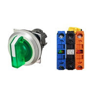 セレクタスイッチ(φ30), 照光, 3ノッチ, 金属ベゼル, 左右に自動復帰, 操作部色: 緑(透明), IP66, ねじ端子台, 接点構成: NC/点灯ユニット/NO, LEDランプ色: 緑, LEDランプ電圧: AC100/110/120V