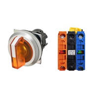 セレクタスイッチ(φ30), 照光, 3ノッチ, 金属ベゼル, 左右に自動復帰, 操作部色: 橙(透明), IP66, ねじ端子台, 接点構成: NO/点灯ユニット/NC, LEDランプ色: 橙, LEDランプ電圧: AC200/220/230/240V