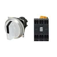 セレクタスイッチ(φ30), 照光, 3ノッチ, 金属ベゼル, 左右に自動復帰, 操作部色: 白(透明), IP66, プッシュインPlus端子台, 接点構成: NO/点灯ユニット/NO, LEDランプ色: 黄, LEDランプ電圧: AC/DC12V