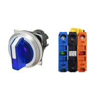 セレクタスイッチ(φ30), 照光, 3ノッチ, 金属ベゼル, 左に自動復帰, 操作部色: 青(透明), IP66, ねじ端子台, 接点構成: NC/点灯ユニット/NO, LEDランプ色: 青, LEDランプ電圧: AC100/110/120V