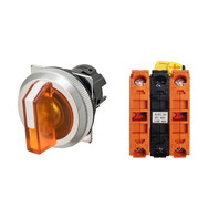 セレクタスイッチ(φ30), 照光, 3ノッチ, 金属ベゼル, 左に自動復帰, 操作部色: 橙(透明), IP66, ねじ端子台, 接点構成: NC/点灯ユニット/NC, LEDランプ色: 橙, LEDランプ電圧: AC200/220/230/240V