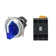 セレクタスイッチ(φ30), 照光, 3ノッチ, 金属ベゼル, 手動復帰, 操作部色: 青(透明), IP66, プッシュインPlus端子台, 接点構成: NC/点灯ユニット/NC, LEDランプ色: 青, LEDランプ電圧: AC100/110/120V