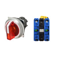 セレクタスイッチ(φ30), 照光, 3ノッチ, 金属ベゼル, 手動復帰, 操作部色: 赤(透明), IP66, ねじ端子台, 接点構成: NO/点灯ユニット/NO, LEDランプ色: 赤, LEDランプ電圧: AC/DC24V