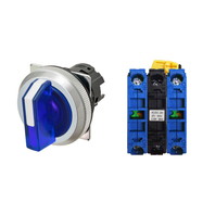 セレクタスイッチ(φ30), 照光, 3ノッチ, 金属ベゼル, 右に自動復帰, 操作部色: 青(透明), IP66, ねじ端子台, 接点構成: NO/点灯ユニット/NO, LEDランプ色: 青, LEDランプ電圧: AC/DC24V