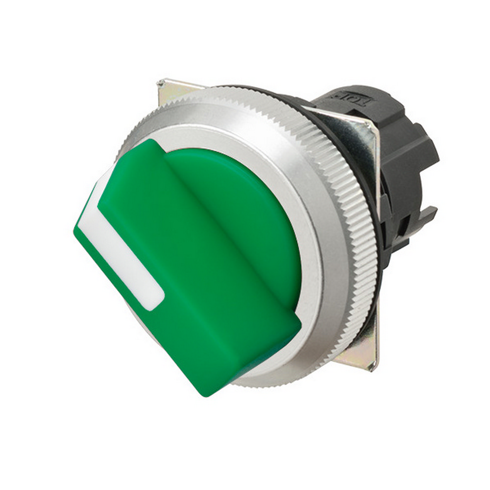 セレクタスイッチ(φ30), 操作部単品, 非照光, 2ノッチ, 金属ベゼル, 手動復帰, 操作部色: 緑(不透明)