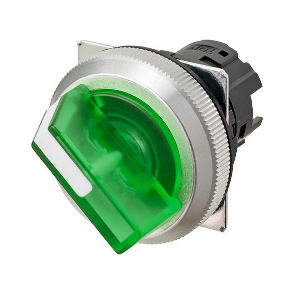セレクタスイッチ(φ30), 操作部単品, 照光, 2ノッチ, 金属ベゼル, 手動復帰, 操作部色: 緑(透明)