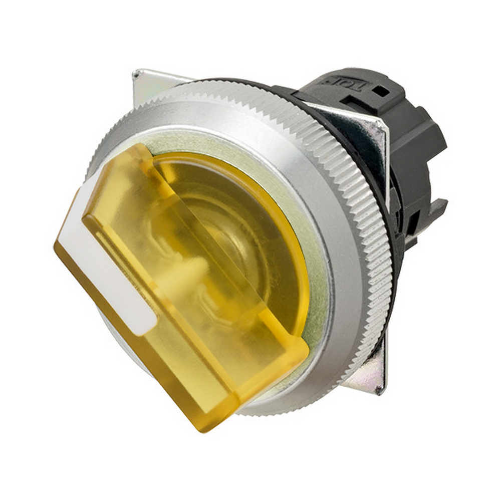 セレクタスイッチ(φ30), 操作部単品, 照光, 2ノッチ, 金属ベゼル, 手動復帰, 操作部色: 黄(透明)