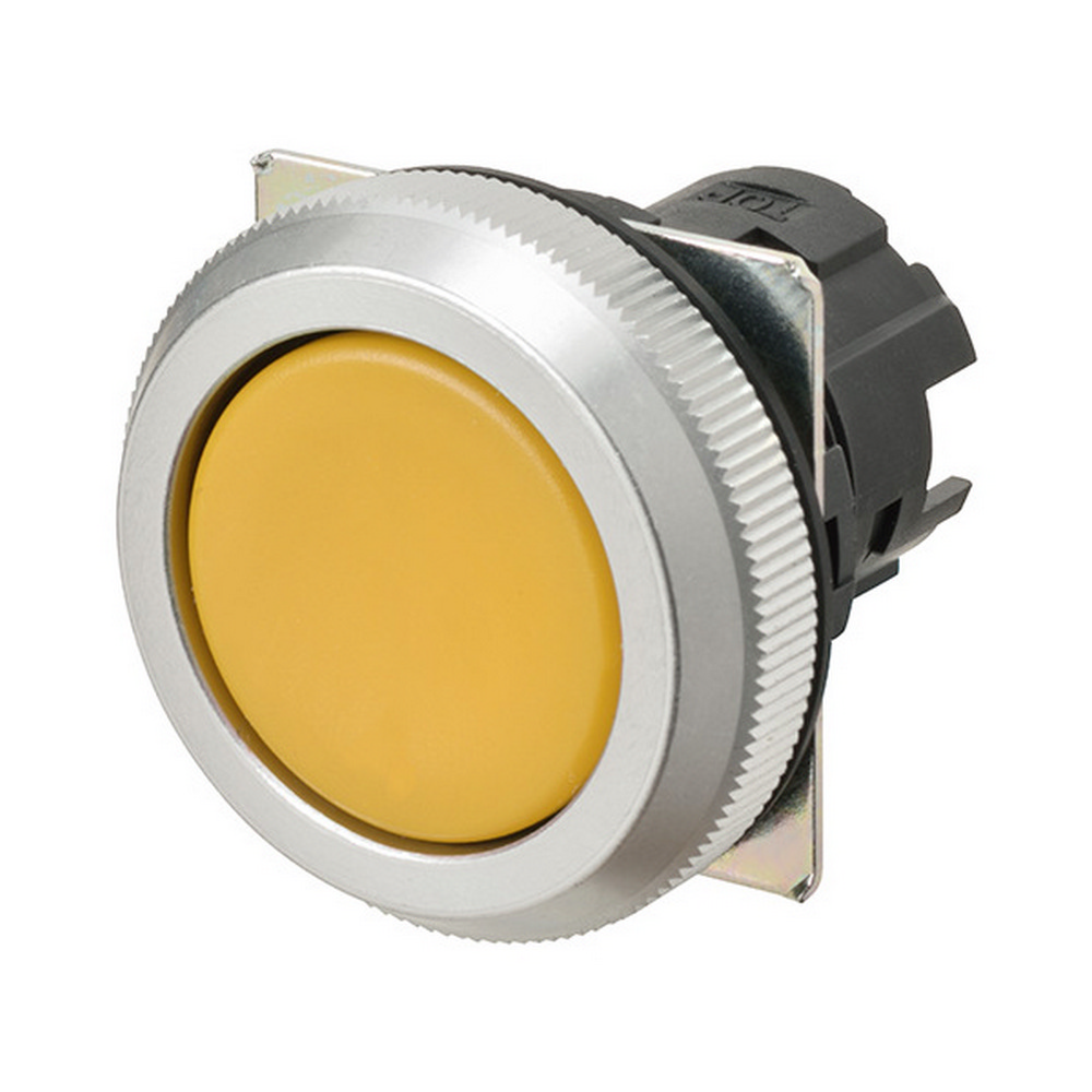 押ボタンスイッチ(φ30), 操作部単品, 非照光, 金属ベゼル, 平形, オルタネイト, ボタンの色: 黄(不透明)