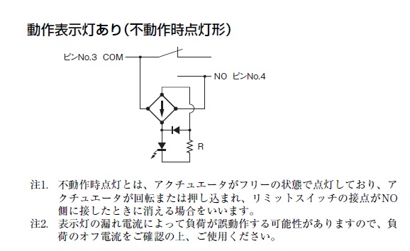 | 動作表示灯 | LED、不動作時点灯 DC30V 漏れ電流: 約1.7mA |