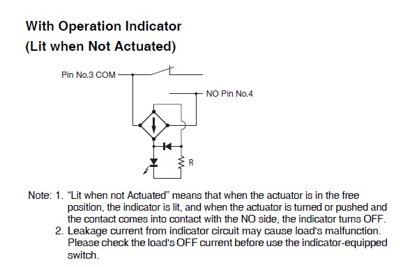 | Indicator | LED, Light when not operating 30 VDC Leakage current: Approx. 1.7 mA |