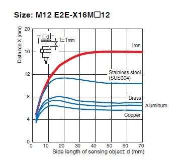 Sensing distance vs. size and material of sensing object