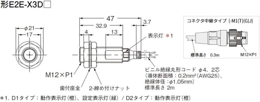 | 材質 | ケース: 黄銅 ニッケルメッキ 検出面: ポリブチレンテレフタレート (PBT) 締めつけナット: 黄銅 ニッケルメッキ 歯付座金: 鉄 亜鉛メッキ コード: 塩化ビニル (PVC) |