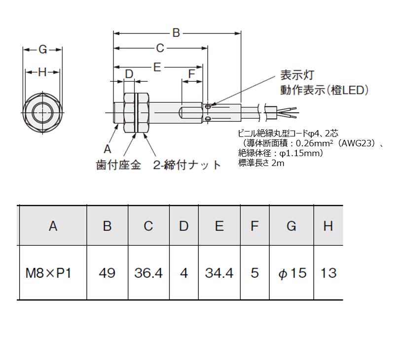 溶接工程向け近接センサ, シールドタイプ, M8, 検出距離 1.5mm, 直流2線式, NC, IO-Link非対応, 有極性, コード引き出しタイプ, 2m
