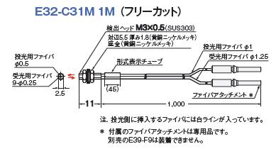 ファイバセンサ, 反射形, M3ねじ型, トップビュー, 開口角 約60°, ケーブル長 1m, R10