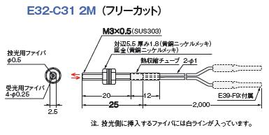 ファイバセンサ, 反射形, M3ねじ型, トップビュー, 開口角 約60°, ケーブル長 2m, R25