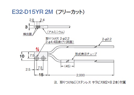 ファイバセンサ, 反射形, サイドビュー, ケーブル長 2m, 折れにくい, R1
