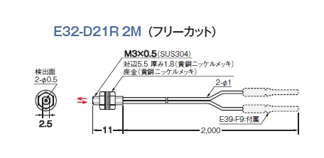 ファイバセンサ, 反射形, M3ねじ型, トップビュー, 開口角 約60°, ケーブル長 2m, 折れにくい, R1