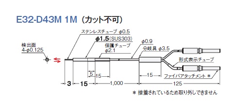 ファイバセンサ, 反射形, φ1.5 円柱型(スリーブ付き), トップビュー, ケーブル長 1m, R4