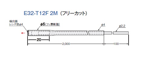 ファイバセンサ, 耐薬品/耐油, 透過形, φ5 円柱型, トップビュー, 光軸径 φ4, ケーブル長 2m, R40