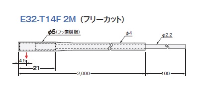 ファイバセンサ, 耐薬品/耐油, 透過形, φ5 円柱型, サイドビュー, 光軸径 φ3, ケーブル長 2m, R40