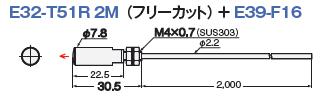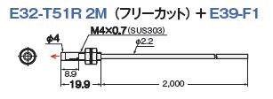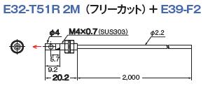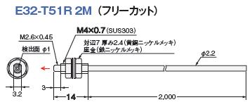 ファイバセンサ, 耐熱(100℃), 透過形, M4ねじ型, トップビュー, 光軸径 φ1, ケーブル長 2m, 折れにくい, R2