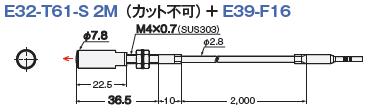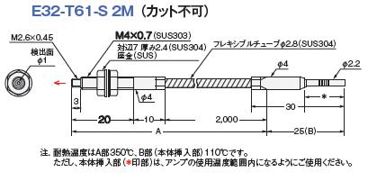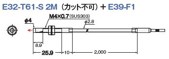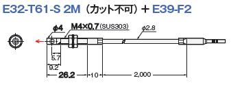 ファイバセンサ, 耐熱(350℃), 透過形, M4ねじ型, トップビュー, 光軸径 φ1, ケーブル長 2m, R25
