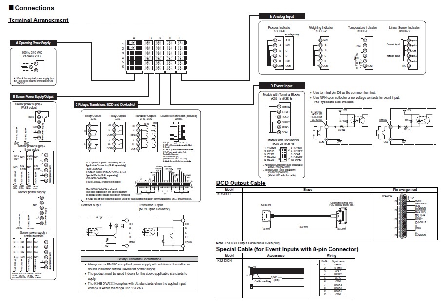 Process Indicator, DC current input, External power supply (12 VDC), Event Input: 5 inputs (No-voltage contact/NPN), Terminal block type, 24 VAC/VDC