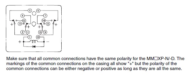 | Insulation resistance | Between coil and contacts: 100 MΩ min. (at 500 VDC) Between contacts of different polarity: 100 MΩ min. (at 500 VDC) Between contacts of same polarity: 100 MΩ min. (at 500 VDC) |
