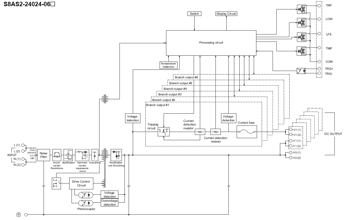 Insulation resistance | Between (Branch output terminals collectively, input/output signals collectively) and (input terminals collectively, PE): 100 MΩ min., at 500 VDC | |
