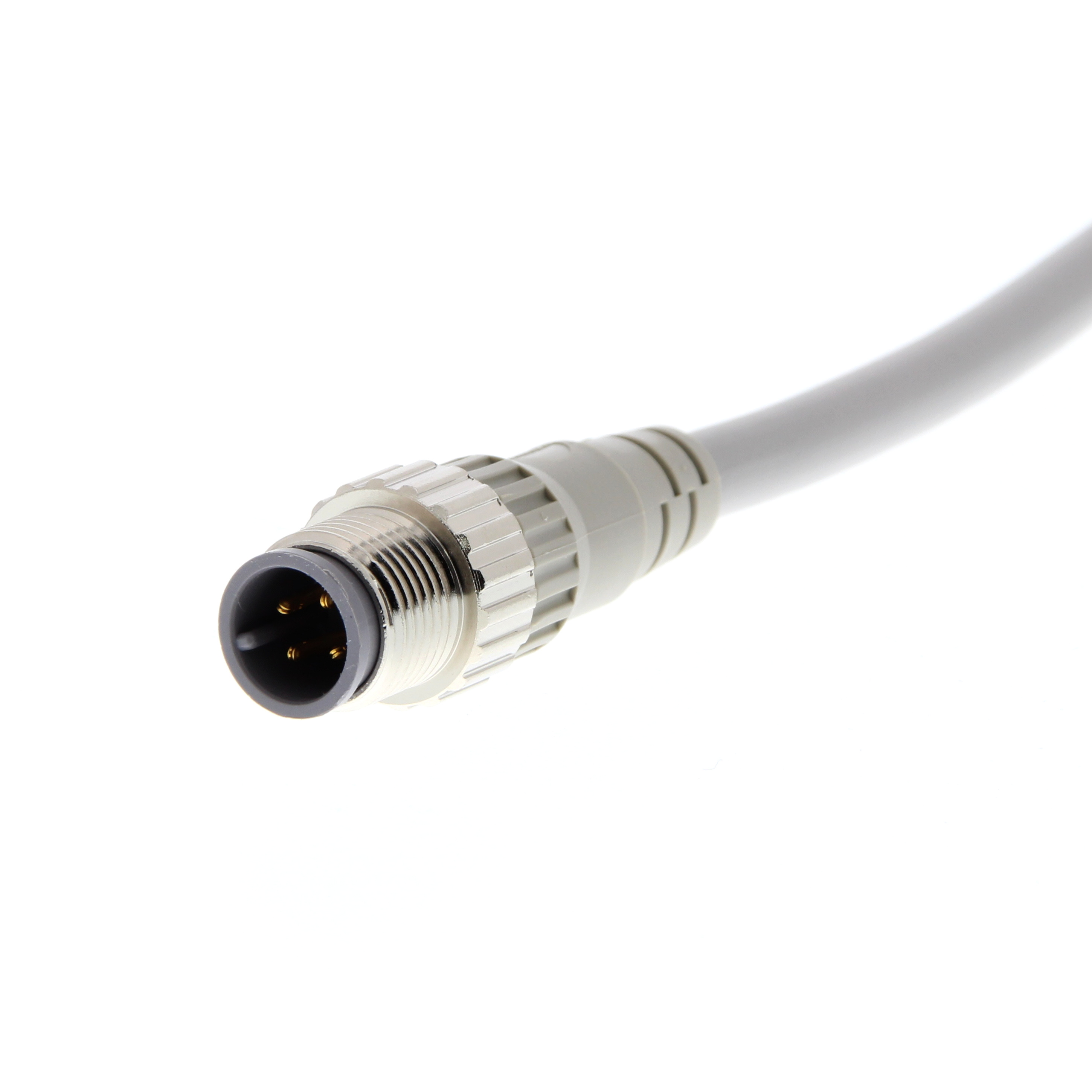 丸型防水コネクタ(M12ねじ式), ケーブル付コネクタ プラグ片側コネクタ, DC用, 4極, ストレート, 4芯, 配線 ①茶 ②白 ③青 ④黒, 難燃性、PVCロボットケーブル, 0.5m