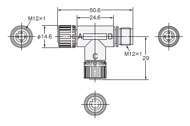 丸型防水コネクタ(M12ねじ式), T字形ジョイント プラグ/ソケット, DC用, 4極, デイジーチェーンタイプ