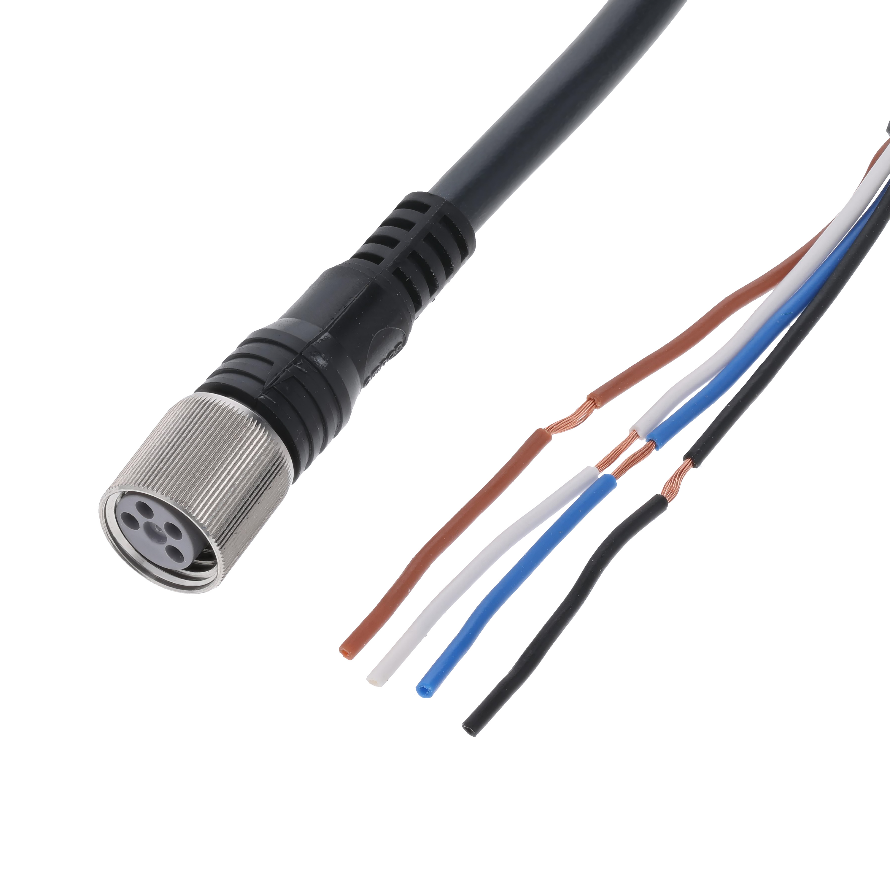 丸型防水コネクタ, ケーブル付きコネクタ ソケット 片側コネクタ, M8ねじ固定タイプ(固定具SUS316L仕様), ストレート, 4極, 標準ケーブル, 5m
