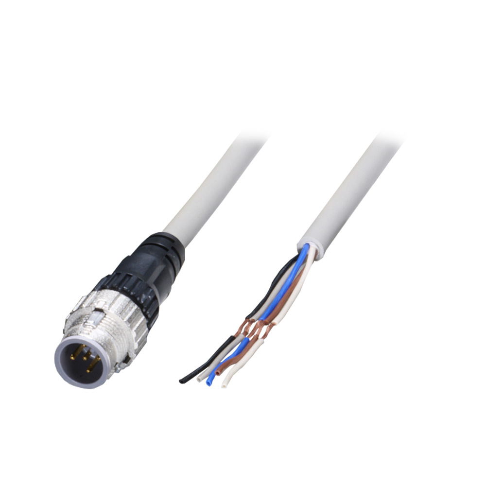 片側コネクタ, M12 プラグ(オス)ストレート, スマートクリック, 5極, Aコーディング, 難燃性 PVCケーブル, IP67, 5m