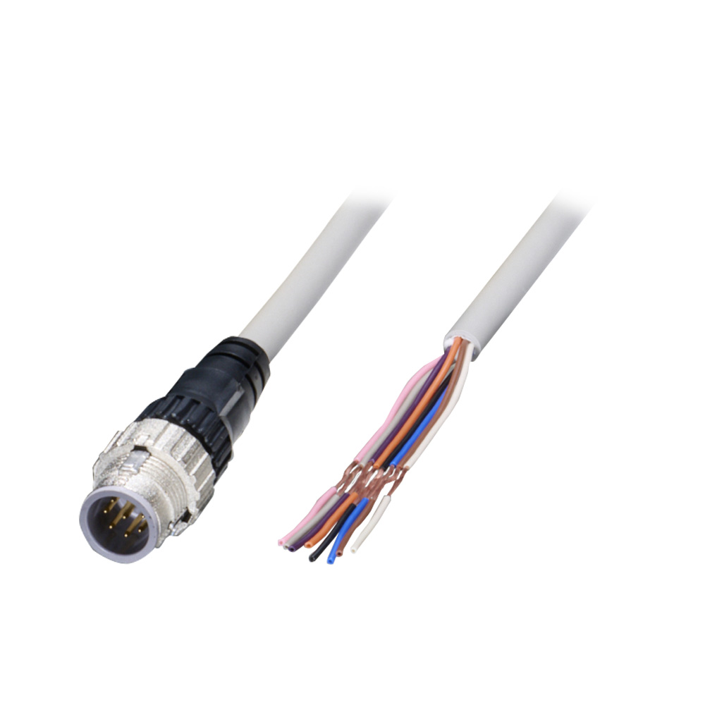 片側コネクタ, M12 プラグ(オス)ストレート, スマートクリック, 8極, Aコーディング, 難燃性 PVCケーブル, IP67, 0.5m