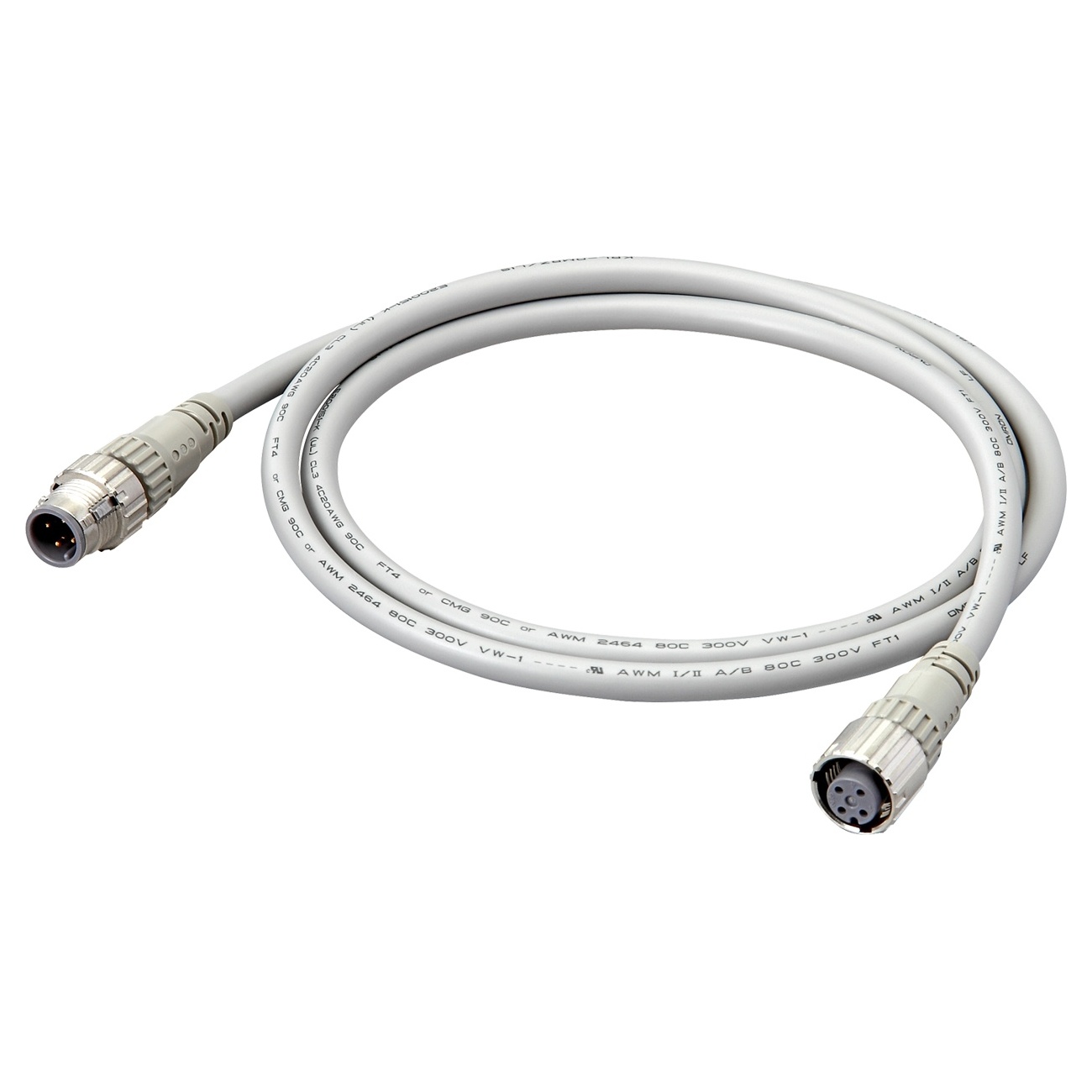 丸型防水コネクタ(M12 スマートクリック), ケーブル付きコネクタ ソケット/プラグ両側コネクタ, A-coding(DC用), 4極, 金めっき, ストレート(ソケット)/ストレート(プラグ), 難燃性、PVCロボットケーブル, 20m