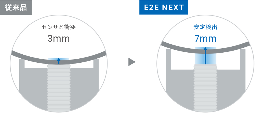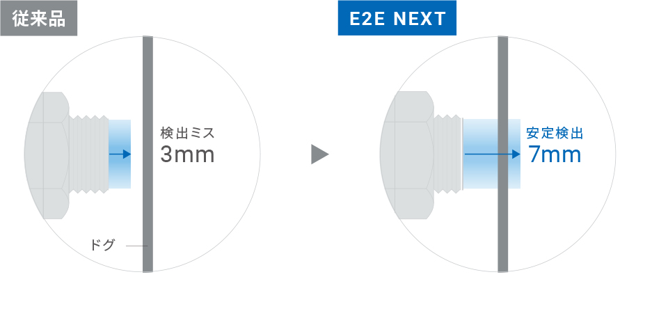 長距離・超長距離タイプなら振動などでドグが離れても安定検出できるので誤動作が低減。設備稼働率を向上します。