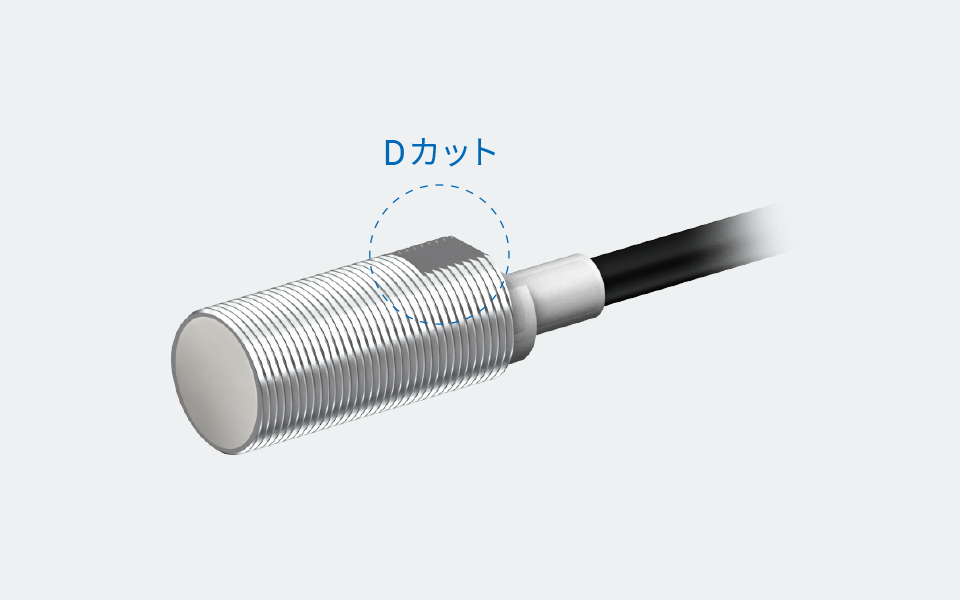 円筒型(ネジタイプ)にはDカットをつけています。取りつけ時に、スパナで確実につかむことができ、センサの回転を防ぎながら、スムーズな作業が可能になります。