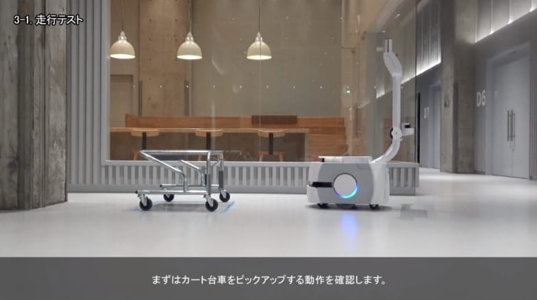 この動画では、カートトランスポータのカートのラッチ・アンラッチの手動操作と自立走行時のカートのラッチ・アンラッチについて説明します。